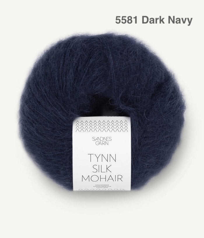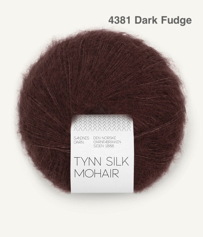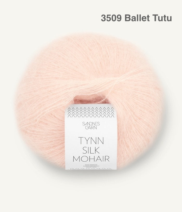 Tynn (thin) Silk Mohair is a versatile entry into the lace/fingering mohair blend category. With a generous halo and a bit of wool in the mix, Tynn Silk Mohair has enough body to be used on its own, singly or doubled, and will produce an airy yet warm fabric. But it's great held with a second yarn, too.